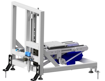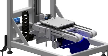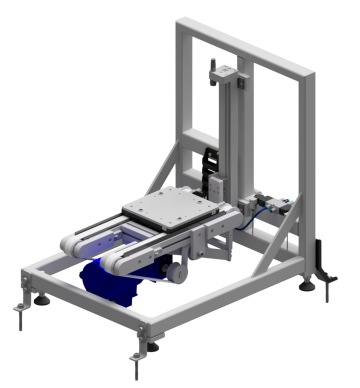 Used to move the pallet to different height levels of the PTS system. The lifting unit includes a belt conveyor that allows reversing - it takes the pallet from the PTS conveyor and can return it back to the conveyor at a different height level, or it can move the pallet to a different height level and continue in the direction of the pallet movement. The conveyor includes pallet stops with damping, pallet position sensors. The conveyor is mounted on a rodless roller with a guide that is used to lift the pallet. The cabling and pneumatic hoses are securely routed in the energy chain. Optional accessories can be added for increased enclosure safety, optical barriers, safety switches on enclosure doors. The carcass consists of a solid and rigid welded steel frame. The height adjustment can be adjusted by means of adjustable feet.